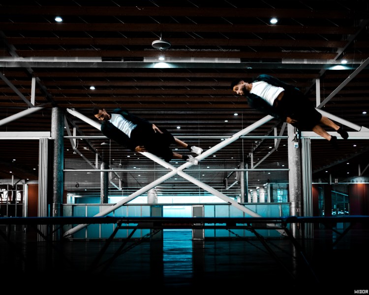 Ce duo hip hop unique sur trampoline fait danser nos regards dans une danse instable ou l’équilibre se trouve en l’air porté par un texte d’Arthur H.