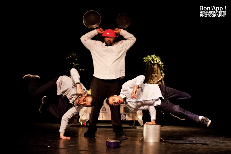 « Bon app’ ! » est un questionnement sur l’alimentation et plus généralement sur le bien-être et l’équilibre. Des contenus aux contenants, de la satiété au contentement, entre besoin et envie, le spectacle sera centré sur l’écoute de son corps, les sensations et les besoins réels mis en opposition à ceux qui sont motivés par nos envies. A travers l’histoire de personnages, les trois artistes vont traverser de l’extérieur vers l’intérieur des états de corps vécus et ressentis en fonction des temps qui animent nos repas. Des odeurs aux envies, du goût à la digestion, s’ensuivra un voyage intérieur agrémenté par les pico projections et la vidéo mobile, rendant ainsi tangible aux spectateurs ce que nous ne voyons pas mais vivons quotidiennement. Loin des clichés de la « mal bouffe », le message ne se veut pas moralisateur mais porteur de sens. Il traitera de manière artistique, humoristique et active la question de la santé.